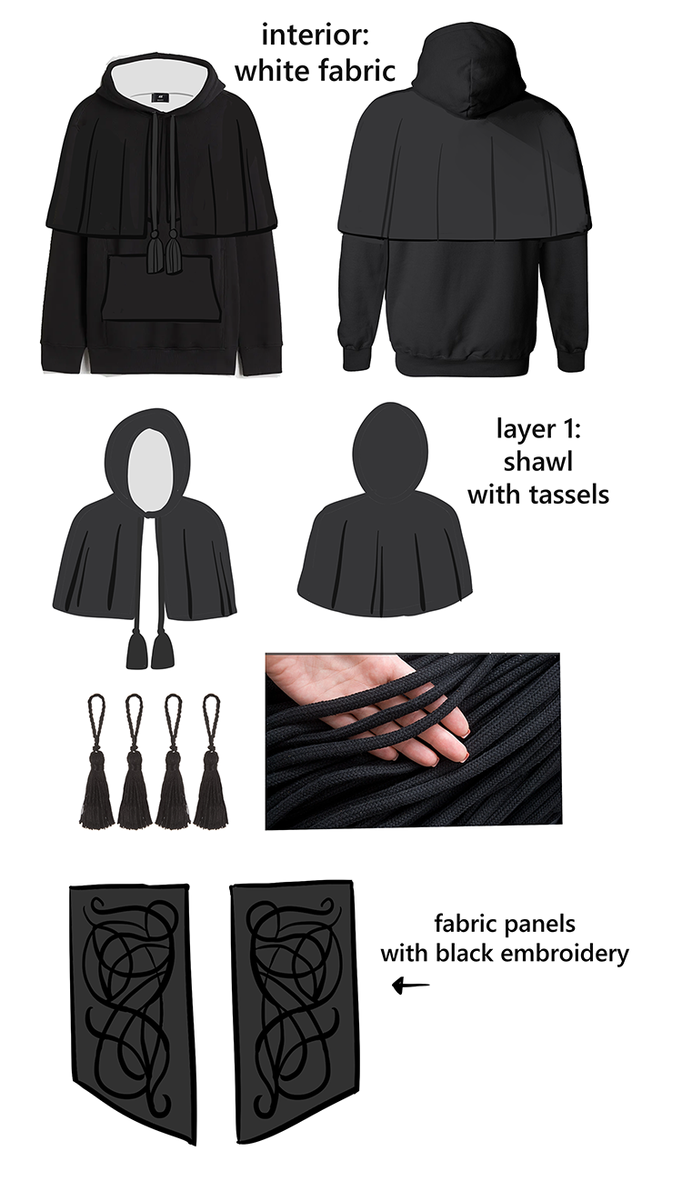 The Ancients hoodie is a pullover hoodie that is akin to the Ancients robes from Elpis! A hoodie with an added shawl, it feels like wearing a blanket in the colder months! Quantities are very limited!